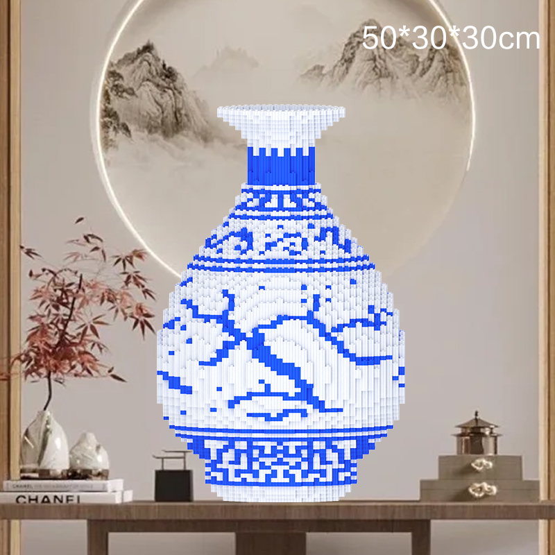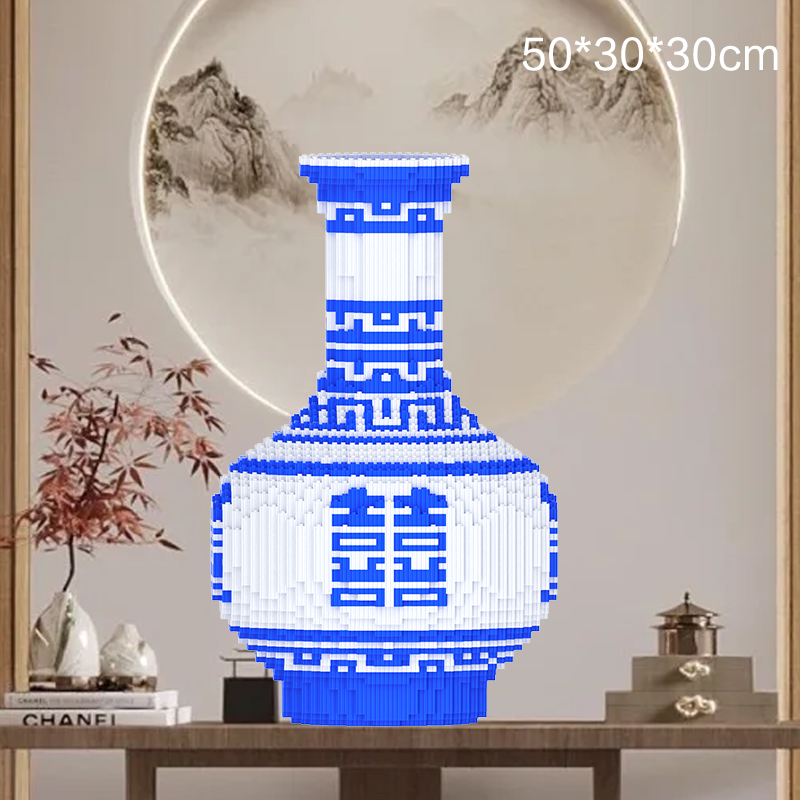 Chinese Blessing Blue and White Porcelain Building Block Ornament (Boxed with Tools)•
