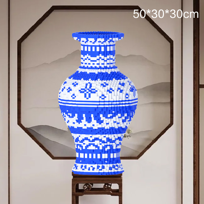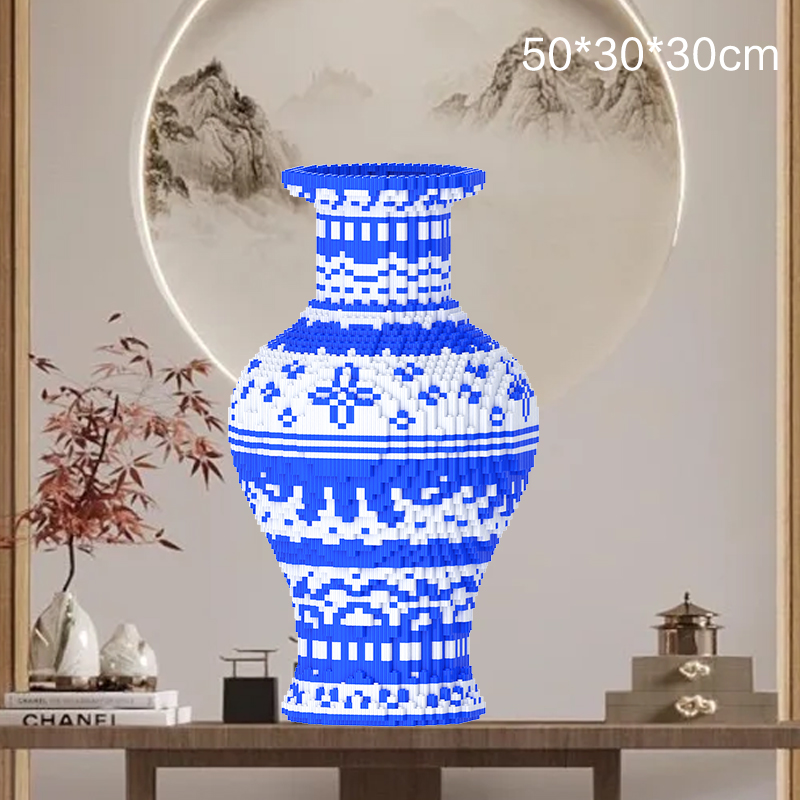 Flower Blue and White Porcelain Building Block Ornament (Boxed with Tools)